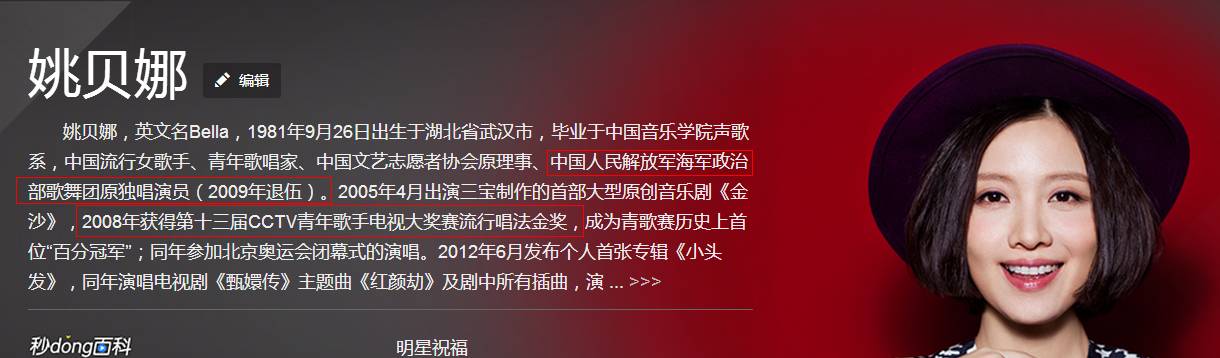 最近的例子就是姚贝娜,她是海军文工团和青歌赛的出身,,声音条件好到可怕。