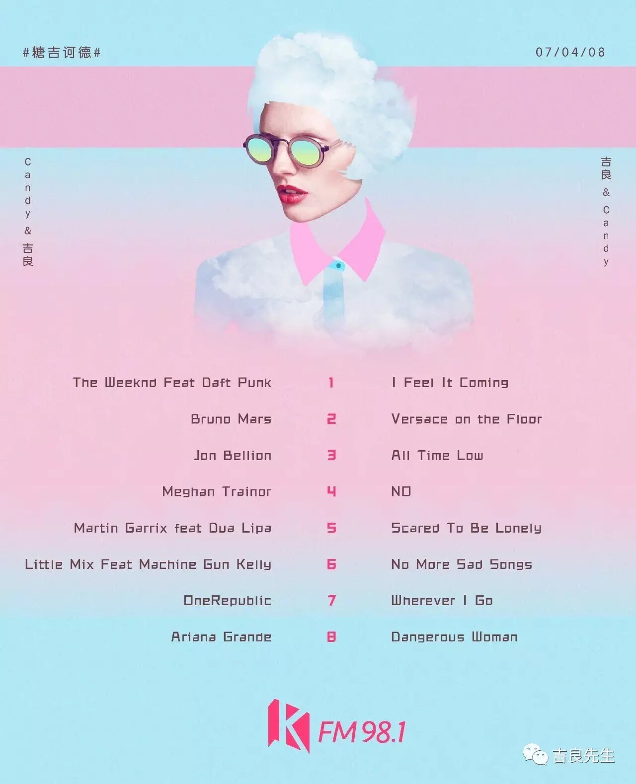 《糖吉诃德》是上海SMG旗下欧美流行音乐电台KFM981(调频98.1)每周六12:00-14:00期间播出的节目,由人气DJ Candy(糖)和博主我本人吉良(吉)共同主持。