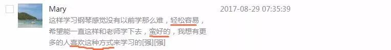 不怕掉队:微信小群跟进学习,每个微信小群配有由Ruth老师亲自培训出来的助教,助教全程答疑,提醒交作业并点评,让你学琴不走弯路。