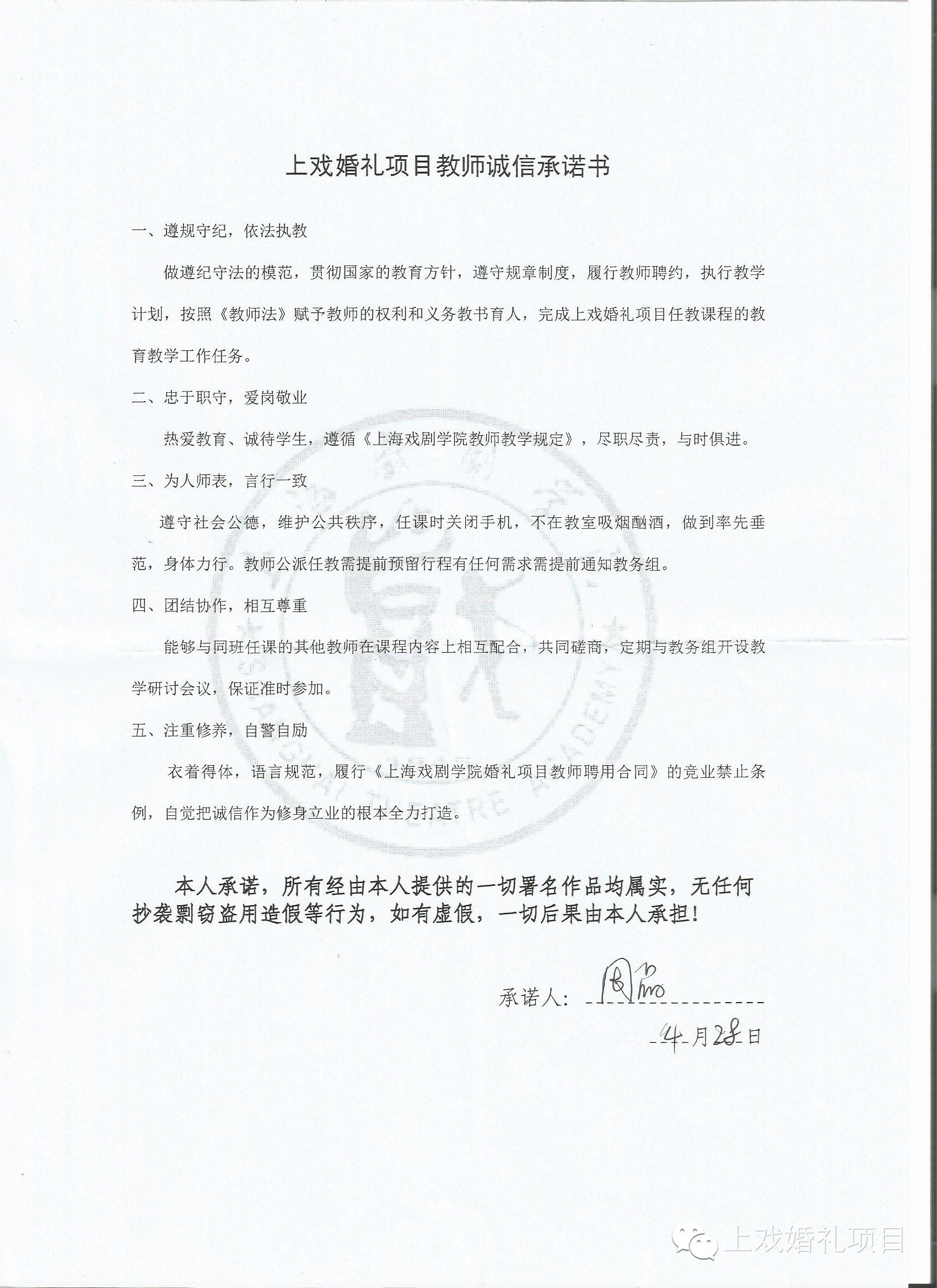 为规范上戏婚礼项目教学环境,杜绝学术造假此类现象在我课程的存在,周晶老师主动配合我们发起的