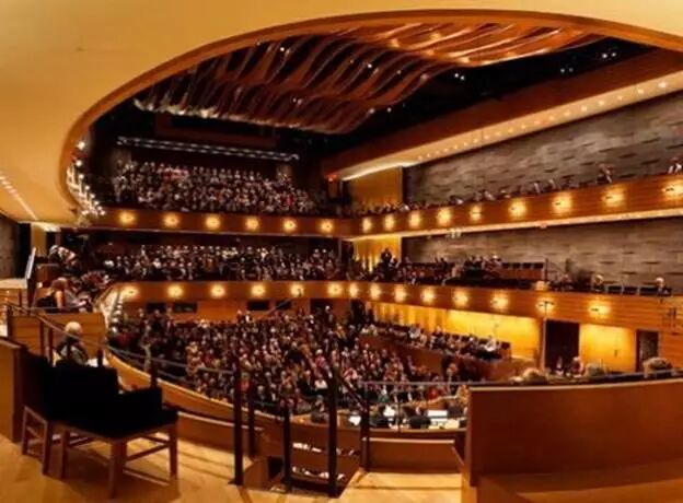 这就是-著名的"钢琴"演奏厅。观众如同坐在一架大钢琴里听演奏。艺术与享受的结合