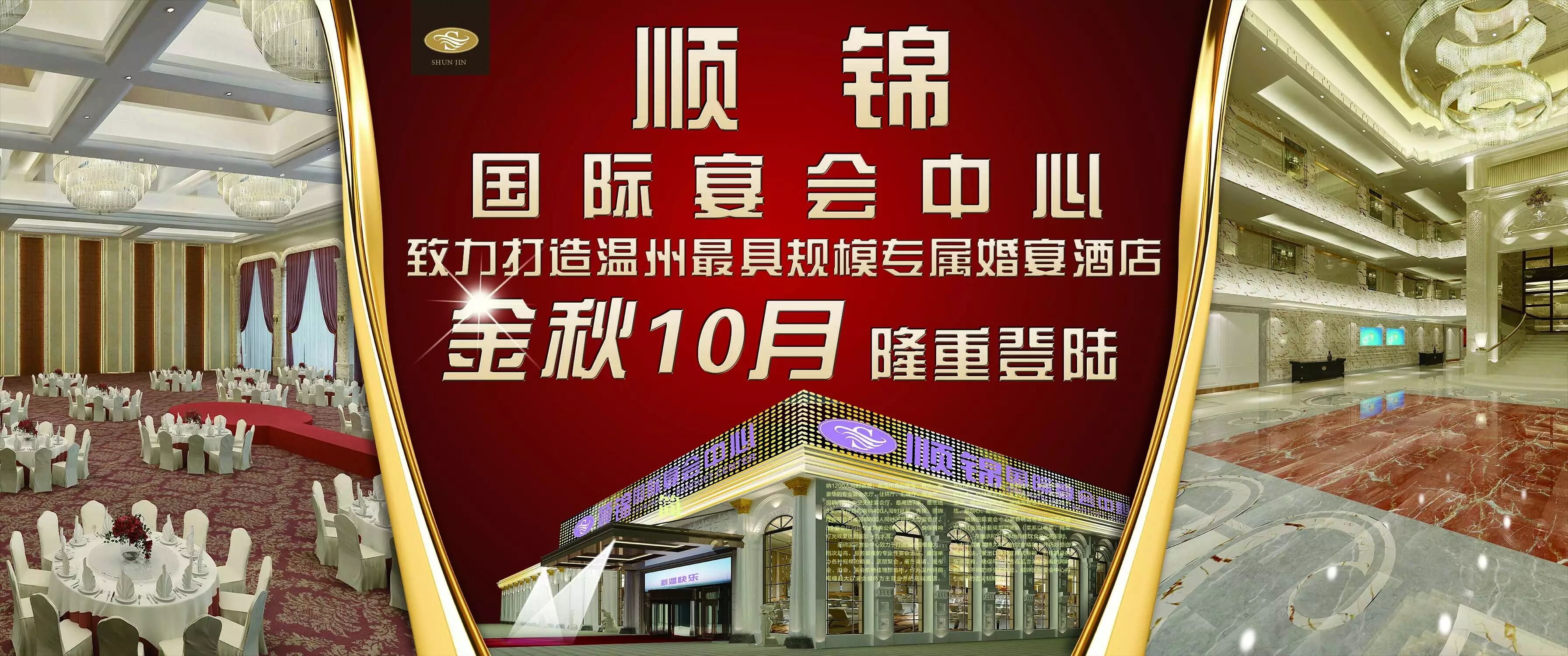 顺锦厅——温州目前最高最大最豪华的宴会厅高12米,面积2000余平方米,可容纳1200人同时就餐。