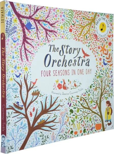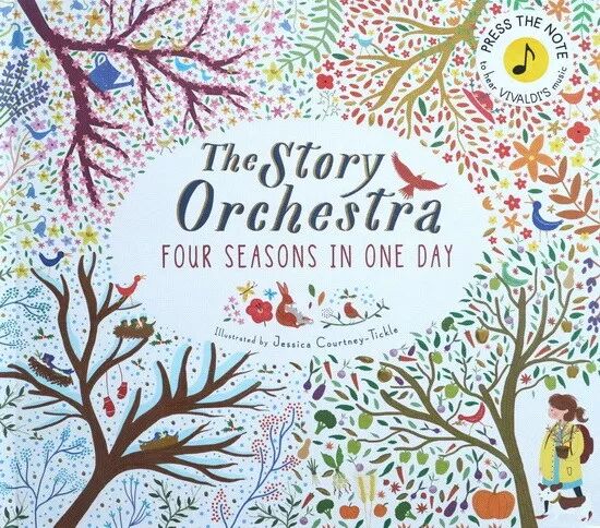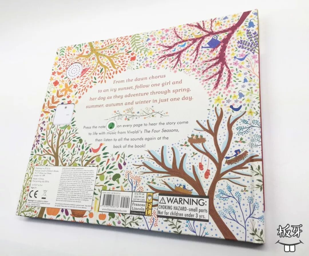 The Story of Orchetra—Four seasons in one day《管弦乐团的故事—四季》,精装布封烫金设计,特别有质感,按一按可以奏乐的绘本,插图精美,让孩子在音乐和画面中感受万物更替,这不仅是一本绘本,更是古典音乐最好的启蒙。