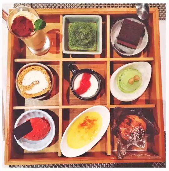 整体布局偏日式西式结合的感觉,简单的家具,却清幽雅致,很有情调。因为希望自己开的店要以食物品质为第一位,所以胡歌没有将自己的照片及画报贴在店内做宣传。但菜品还是收获了很高的人气,尤其“甜品九宫格”,不仅造型独特,味道也很好。九个小点只只好吃,甜度适中,甜而不腻,让你一次性吃到爽。