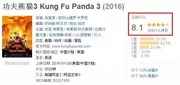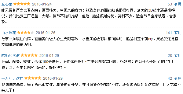 从观众的口碑评价中能够感受到,《功夫熊猫3》不但是一部合家欢笑、老少咸宜的动画电影,还是一个走心感动、引发情感共鸣的温暖故事。