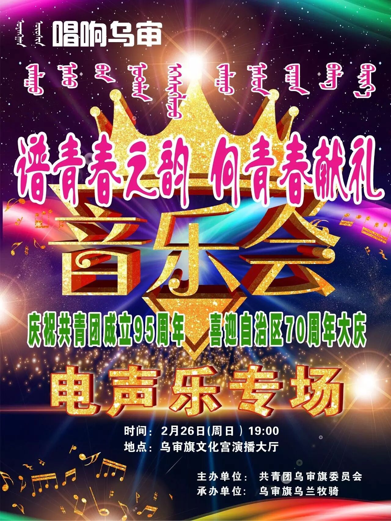 用激昂的乐声带动梦想飞扬,让青春奏响欢乐的华丽乐章,用乐符诠释青春,向青春致敬。为庆祝成立95周年,喜迎自治区70周年大庆,乌审旗委员会同乌审旗乌兰牧骑联合举办主题为“谱青春之韵 向青春献礼”电声乐专场音乐会。
