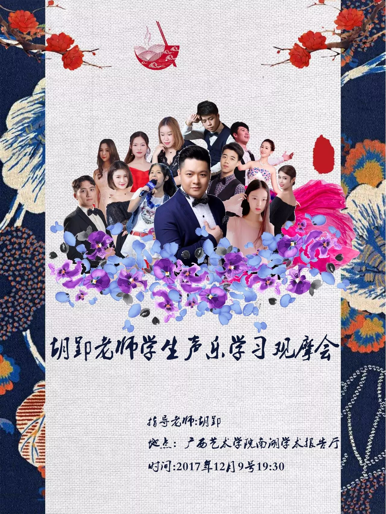 兹定于2017年12月9日(星期六)19:30在广西艺术学院南湖学术报告厅举办“胡郢老师学生声乐学习观摩会”。