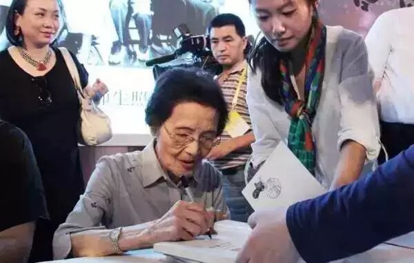 ▲ 2012年8月17日,95岁的周小燕在上海书展举行的《她是这样一个人——写真周小燕》签售仪式上为读者签名。 许晟