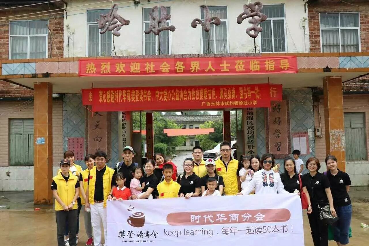 其中7月初,时代华商商学院组织了一批爱心人士前往广西玉林市福绵区成均镇井龙小学和岭肚小学,带上时代华商学员捐赠的1000多本书籍,并另外捐赠了两个图书室所需要的书桌、书柜和1200多本新书。此举受到当地学生、家长和老师的一致感谢!