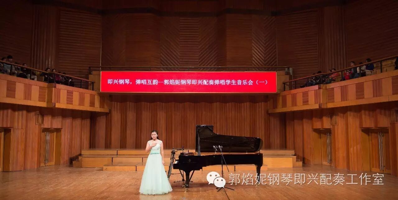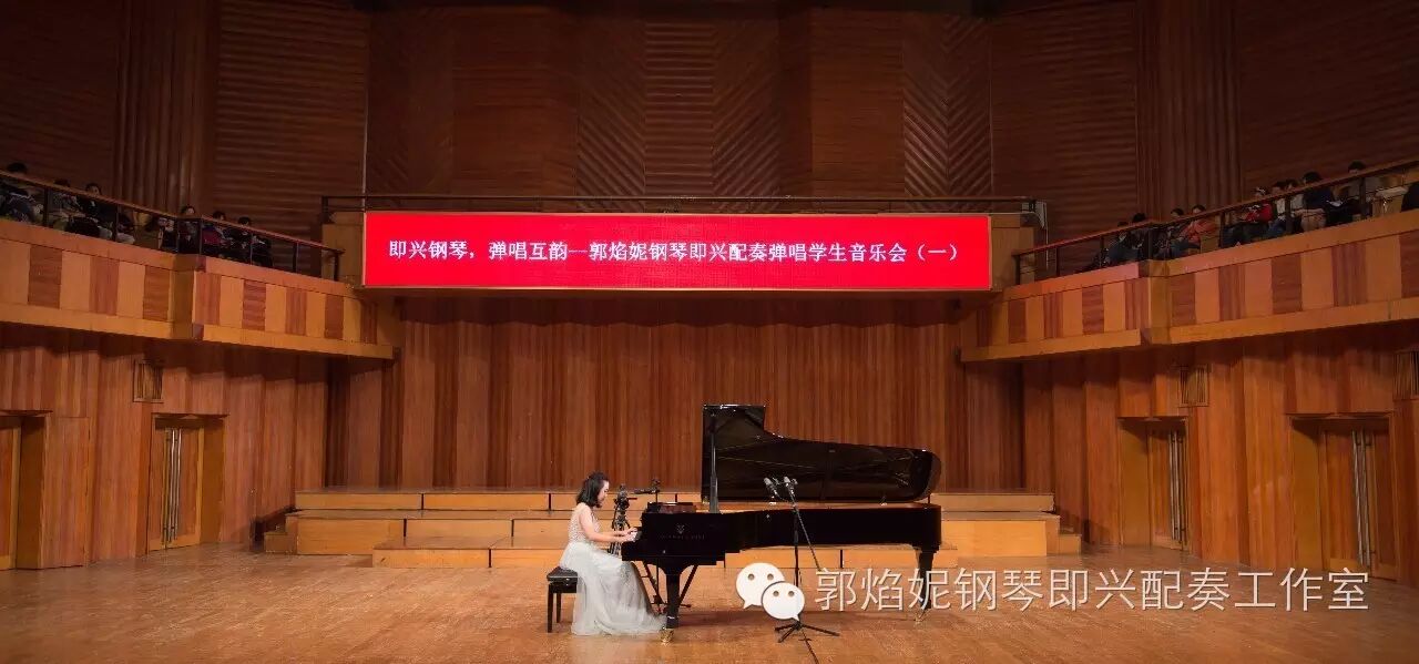 2016年11月6日,蓉城的初秋夜晚,温凉宁静。水碾河娇子音乐厅的门前灯火通明,集满了来自成都各艺术院校的师生、和社会各界的音乐爱好者们,他们在等待一场《即兴钢琴,弹唱互韵—郭焰妮钢琴即兴配奏弹唱学生音乐会(一)》。