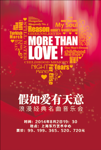 “More Than Love”假如爱有天意——浪漫经典名曲七夕音乐会上,爱乐汇轻音乐团的音乐家们,将为乐迷现场演奏经过捷克作曲大师重新编配浪漫经典曲目。