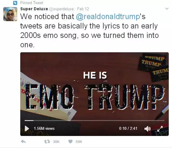 为了更能生动地表达特朗普的心声,Super Delux组合机智地将特朗普当选总统后发布的推文编成了《推特治国之歌》,发在了推特上。