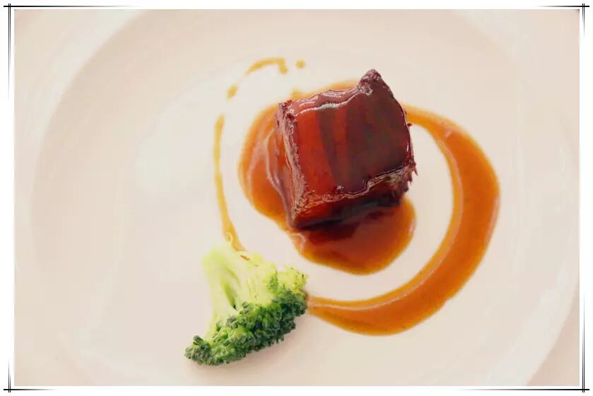 肥瘦相间的北京黑猪肉,在花雕酒浓汤蜜汁的包裹中慢慢炖制,渐渐丰满油亮起来。小心夹起一块,亮晶晶、红扑扑,一口咬下去,一层肥肉,肥而不腻;一层瘦肉,入口即化……下面又是一层肥肉,紧跟着一层瘦肉,层次分明,又不见锋棱。不知不觉间,鲜香汁水充盈口腔,唇齿间获得极大满足。
