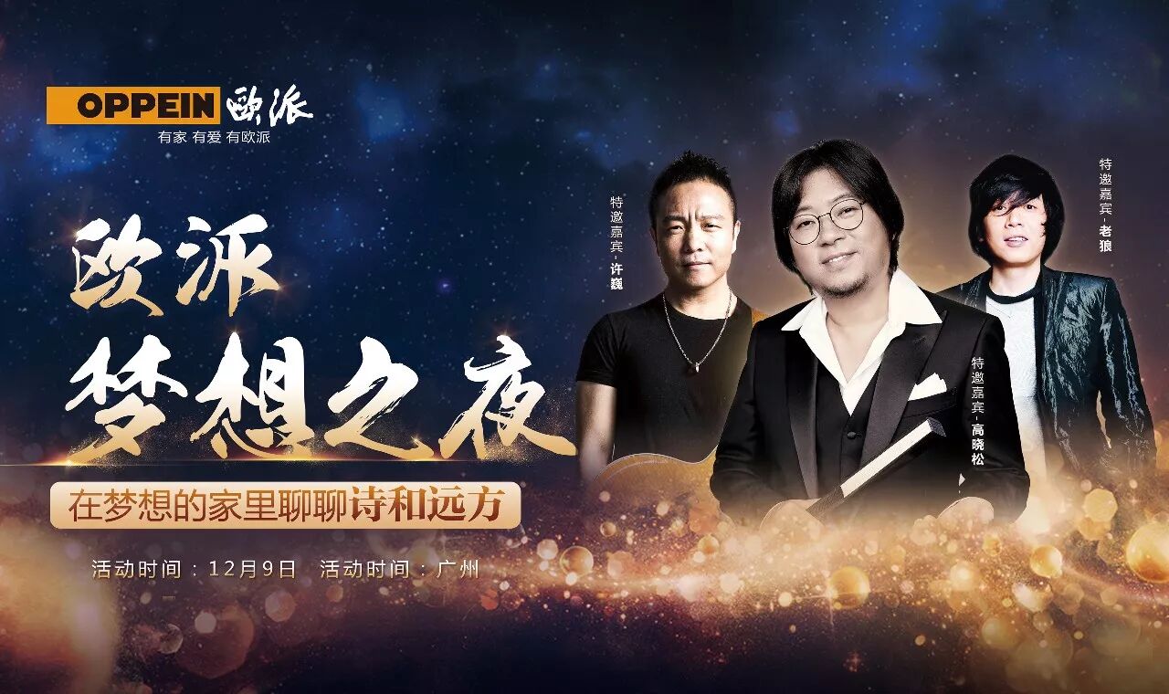 12月9日,欧派将邀请高晓松、老狼、许巍这三位音乐诗人首度同台合体,定制一场关于青春与诗意的专场音乐会,邀请所有被他们歌唱过青春的人去观看,让所有人和自己曾经的梦想见一见面。