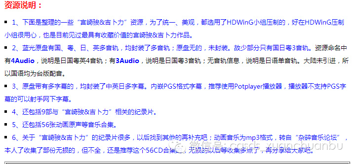 此合集包括4部分:宫崎骏&吉卜力全部19部动画、12部原画特典、9部相关纪录片、56张动画原声音乐。19部动画全为蓝光720p,国粤日英多音轨、英简繁多字幕。(下载方式及地址在文末)