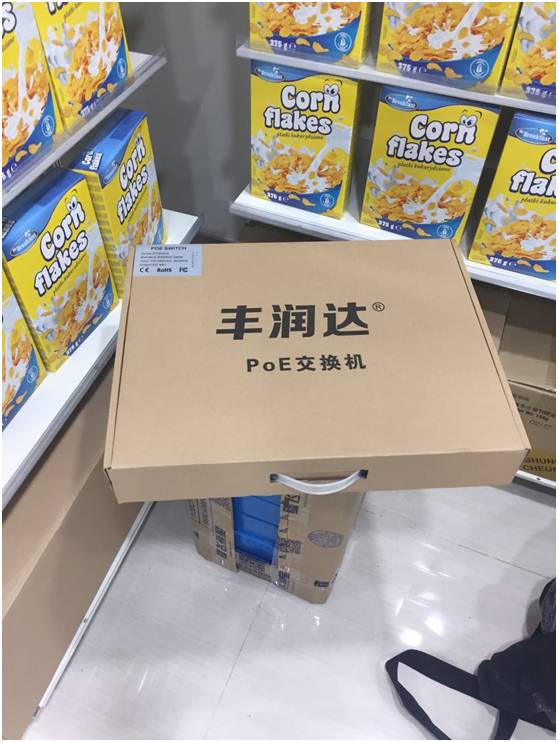 2、超市人流量大,从安全角度考虑出发,采用近两年流行的POE供电技术。