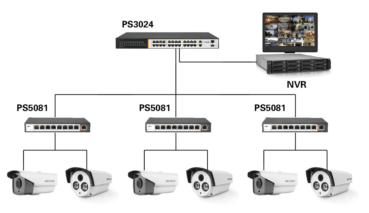 4、视频监控部分要求采用大功率POE供电交换机,避免出现供电不足的现象。