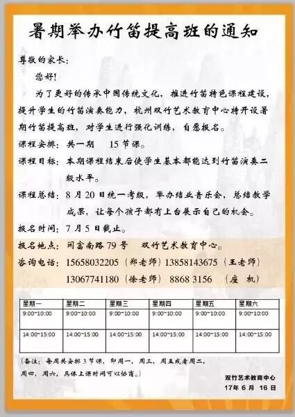 我艺术中心特针对闲林小学学生开设暑期提高班,应广大家长、学生要求根据实际情况,开班情况调整为以下几种。(课费:15节/期、600元)
