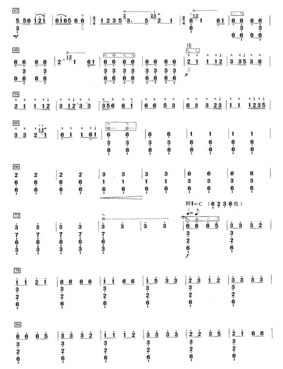 乐曲创作于1960年,采用四川民歌《采花》为主题写成,通过各种不同的变奏手法,以轻巧、活泼、富有歌唱性的舞蹈旋律描绘出我国西南地区的“花会”佳节景况,表现人们从四面八方赶赴花会兴高采烈、载歌载舞的情景。演奏时应注意“摘”的运用,要能模仿出民间歌舞敲打盅盘伴唱的效果;接着的“扫轮”乐段,有若白族男青年弹着大三弦,跳起劲舞一样;随之的“长挑轮”乐段,是写女青年们边唱边跳的婀娜多姿舞态;紧接着“大摭分”和“夹扫”,要能将音乐推向高潮,柔和甜美的再现“长挑轮”乐段让人沉醉在充满幸福美好的遐想中结束全曲。