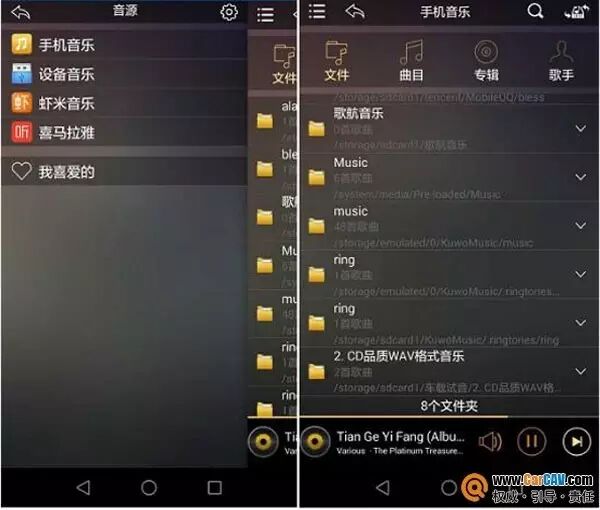B.支持多路音源:通过APP,可以自如地选择播放手机本地(如酷狗、百度音乐、QQ音乐下载的音乐)、设备内存、U盘/移动硬盘、在线曲库的音乐。