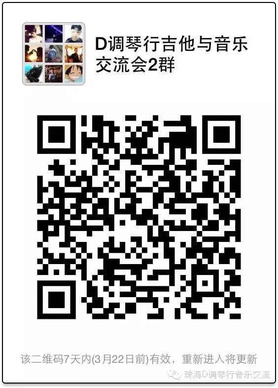 只要扫下面的二维码加入下面的D调琴行交流群1群,便可加入我们的D调琴行吉他与音乐交流会,加我我们的演出团队,一起交流和学习音乐知识。我们免费提供各种各样的乐器和演出设备,只要你喜欢音乐,无论是吉他还是架子鼓还是尤克里里还是键盘等等,都可以加入我们的交流会,与我们一起组乐队一起交流音乐。
