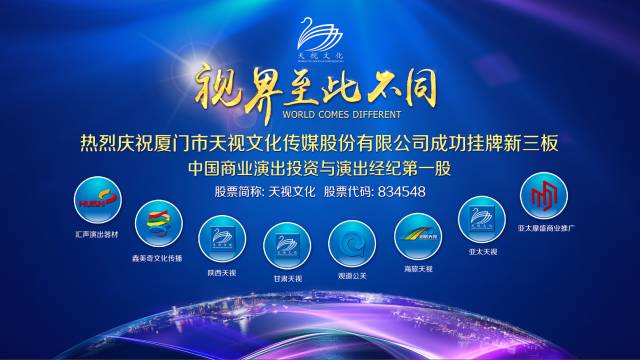 视界至此不同,厦门市天视文化传媒股份有限公司成功挂牌新三板后,产业规模不断扩大,形成了文化产业的完整产业链形态,旗下优势产业汇声演出器材、鑫美奇文化传播、陕西天视、甘肃天视、观道公关、海旅天视、亚太天视、亚太摩盛等携同一道,共谱文化产业新华章。