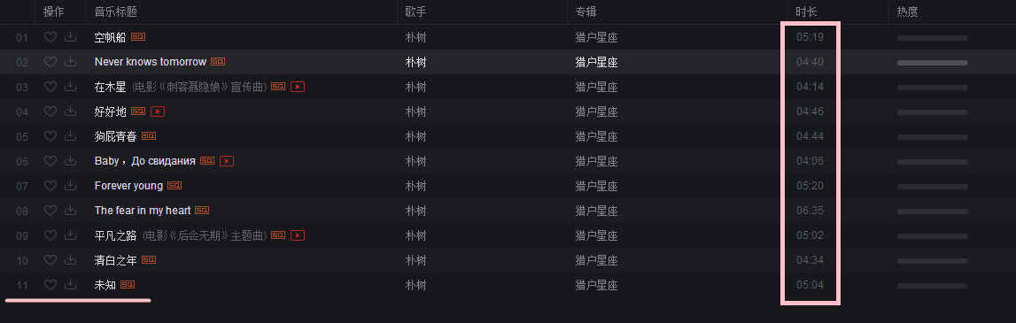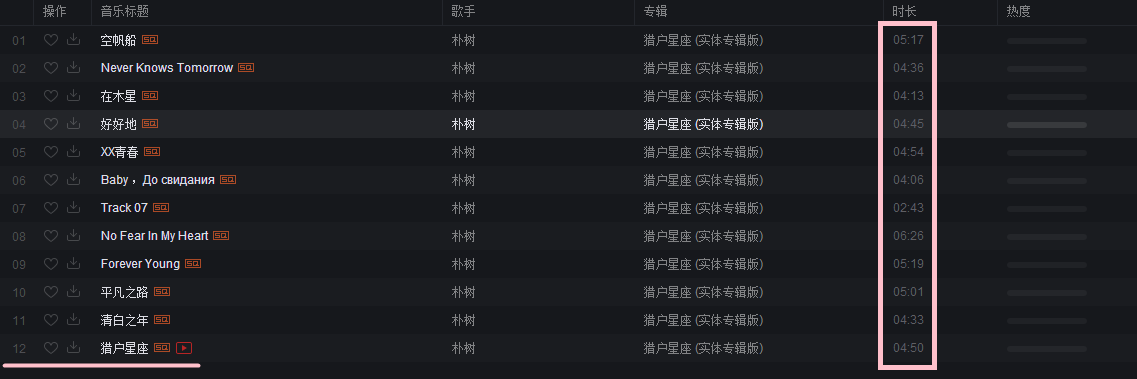 再仔细对比下每首歌的时间,都是不一样的。看来朴师傅都已经把作品调到了自己最满意的状态了。