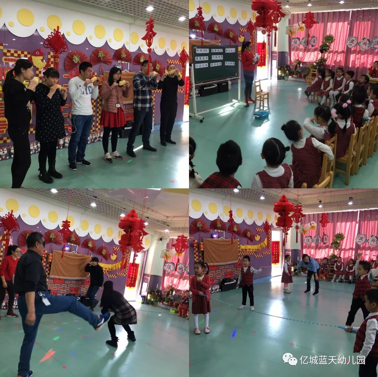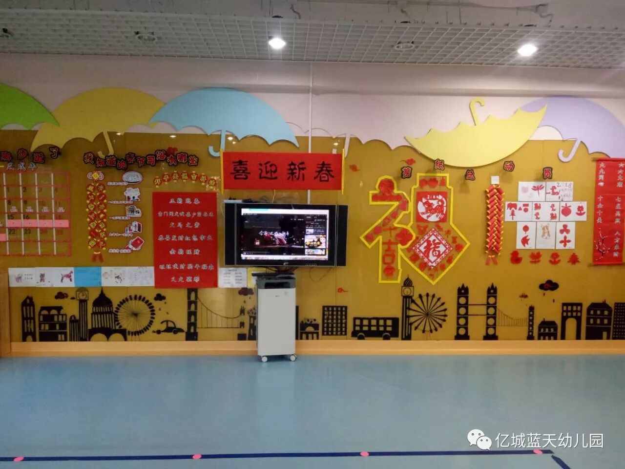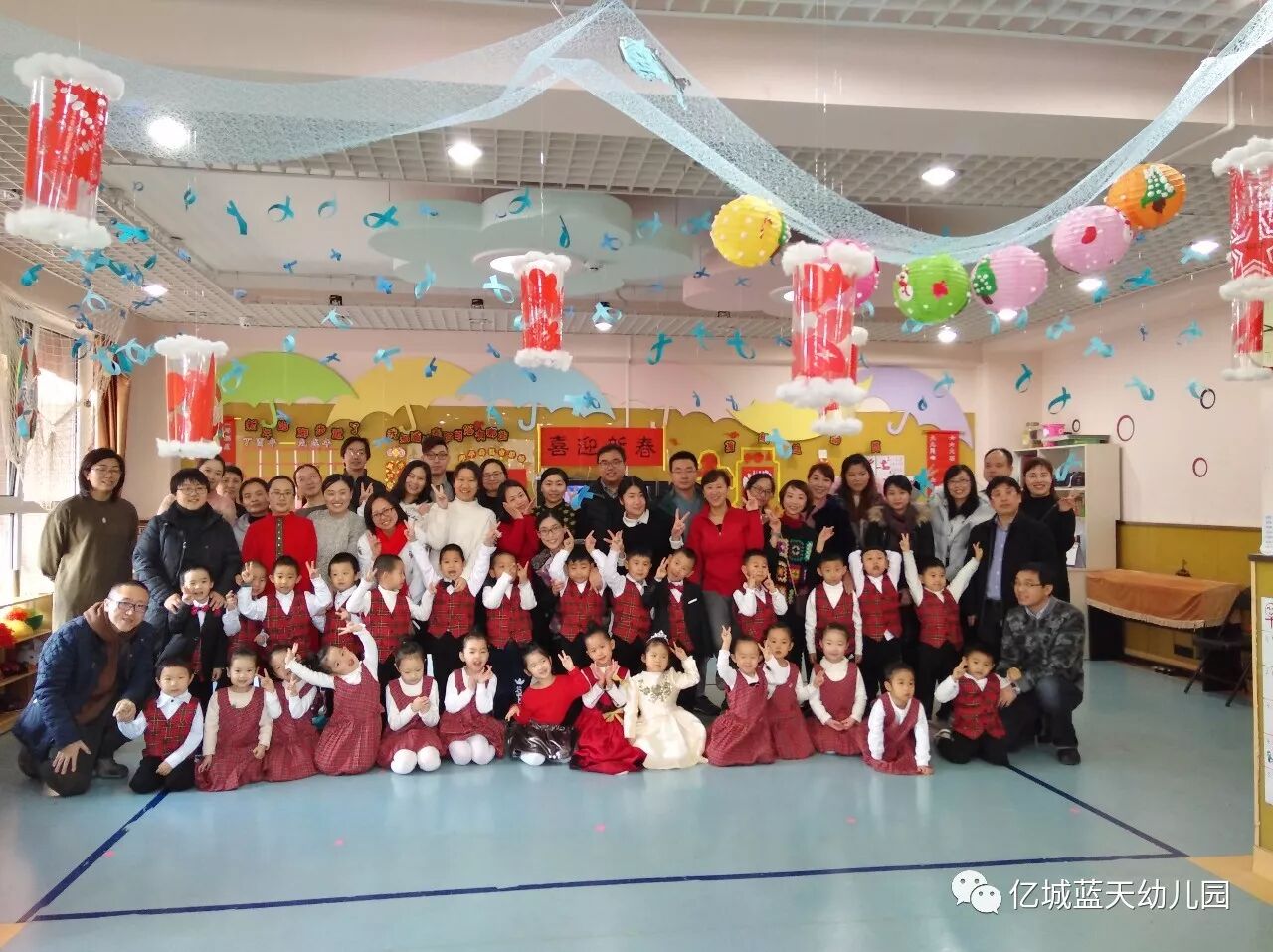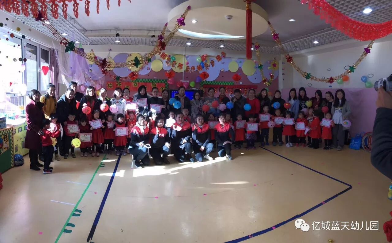 辞旧岁,迎新年!告别了难忘的2017年,孩子们又长大了一岁,他们在父母的关爱中慢慢懂事,在老师的鼓励下渐渐长大,在幼儿园里学会了很多的本领!为了欢庆充满快乐、幸福、美满的2018年,也为了让孩子们度过一个有意义的新年,1月5日上午,亿城蓝天幼儿园举行了“相约幸福,快乐成长”亲子联欢活动。家长、孩子和老师们欢聚一堂,一起欢庆新年的到来。