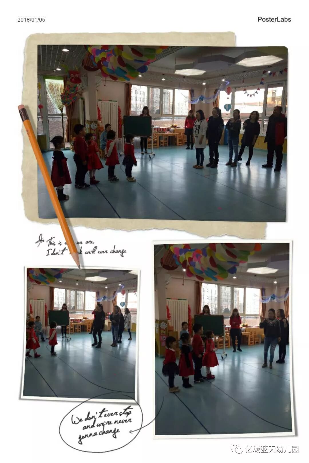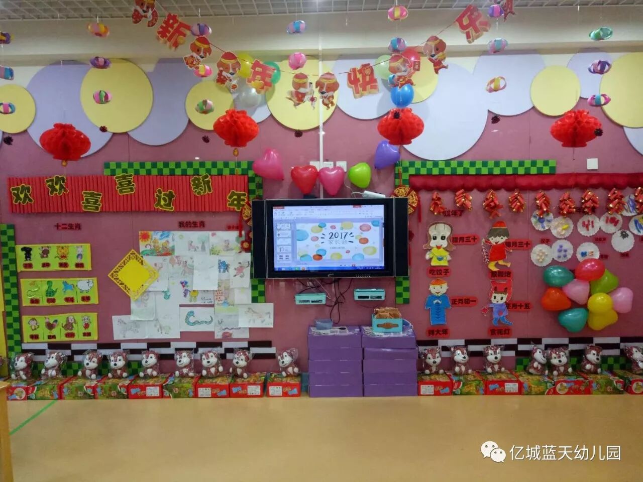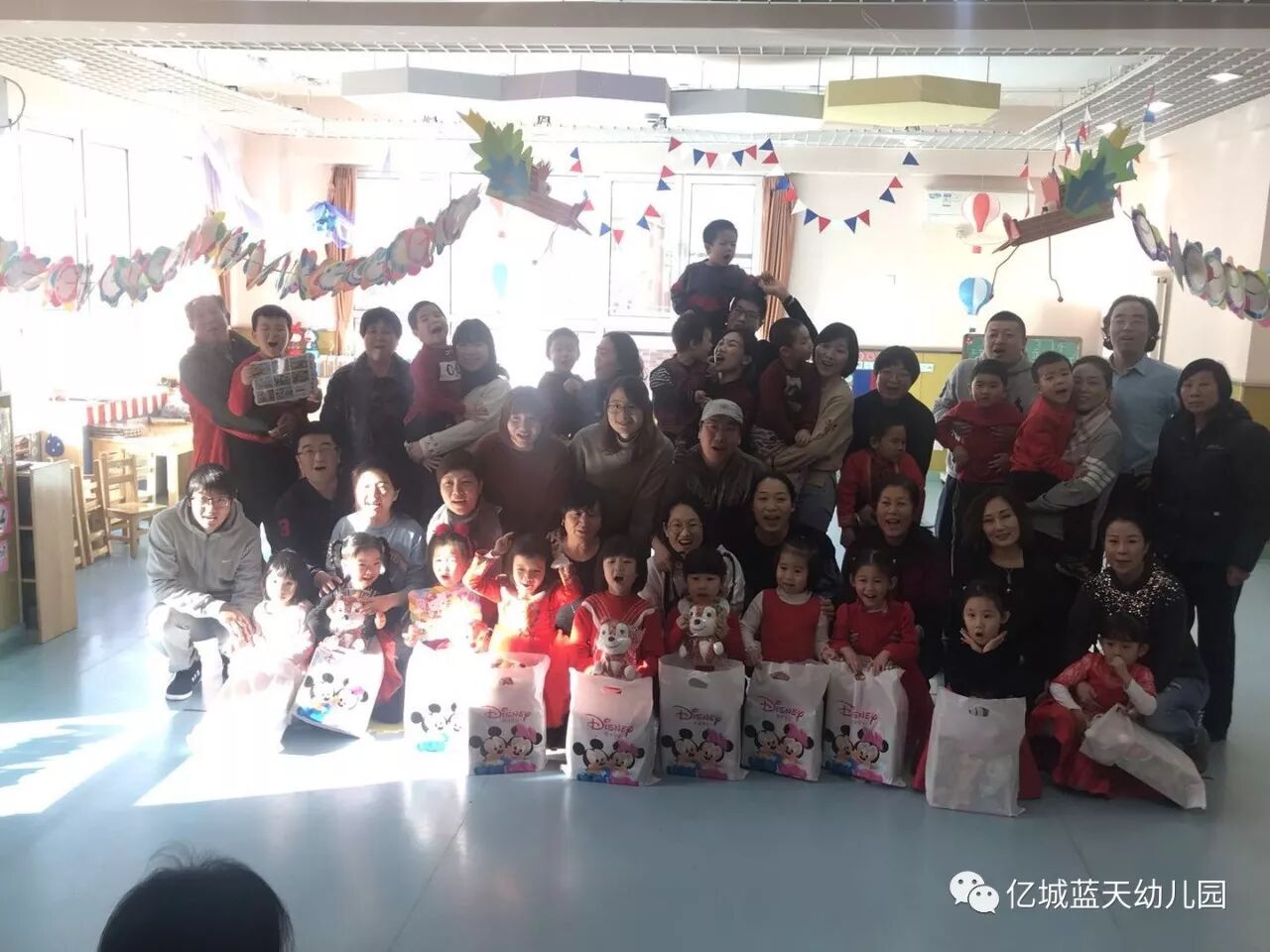 辞旧岁,迎新年!告别了难忘的2017年,孩子们又长大了一岁,他们在父母的关爱中慢慢懂事,在老师的鼓励下渐渐长大,在幼儿园里学会了很多的本领!为了欢庆充满快乐、幸福、美满的2018年,也为了让孩子们度过一个有意义的新年,1月5日上午,亿城蓝天幼儿园举行了“相约幸福,快乐成长”亲子联欢活动。家长、孩子和老师们欢聚一堂,一起欢庆新年的到来。
