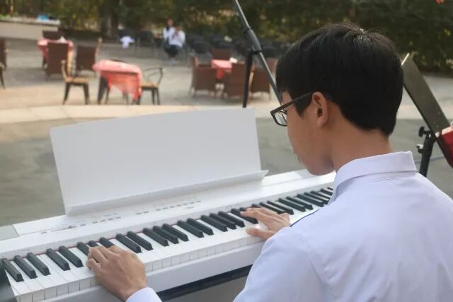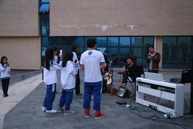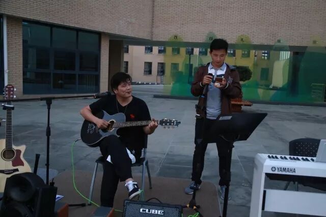我校音乐老师陆地及“首席调音师”罗小云更是将首次合作舞台献给了此次烧烤音乐会,清新的组合吸引了不少学生围观。