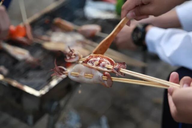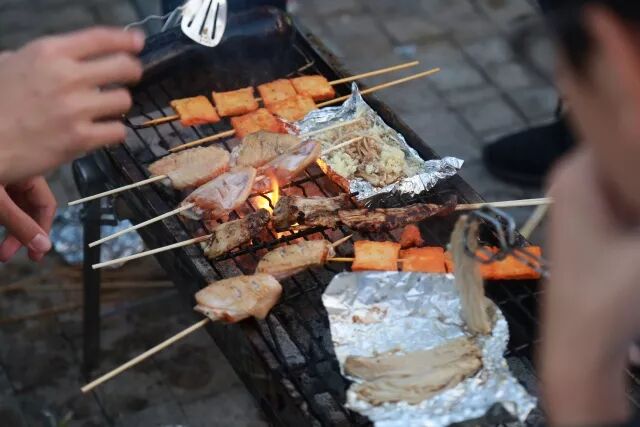 音乐社团的学生在现场有了新的“头衔”,那便是“一日厨师”的体验,孩子们负责给大家准备食材、配料和烤食物,大伙们都乐在其中。