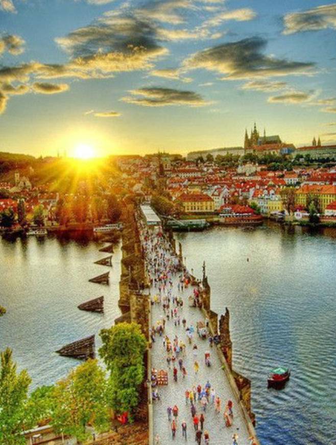 查理大桥(Charles Bridge)横跨伏尔塔瓦河上