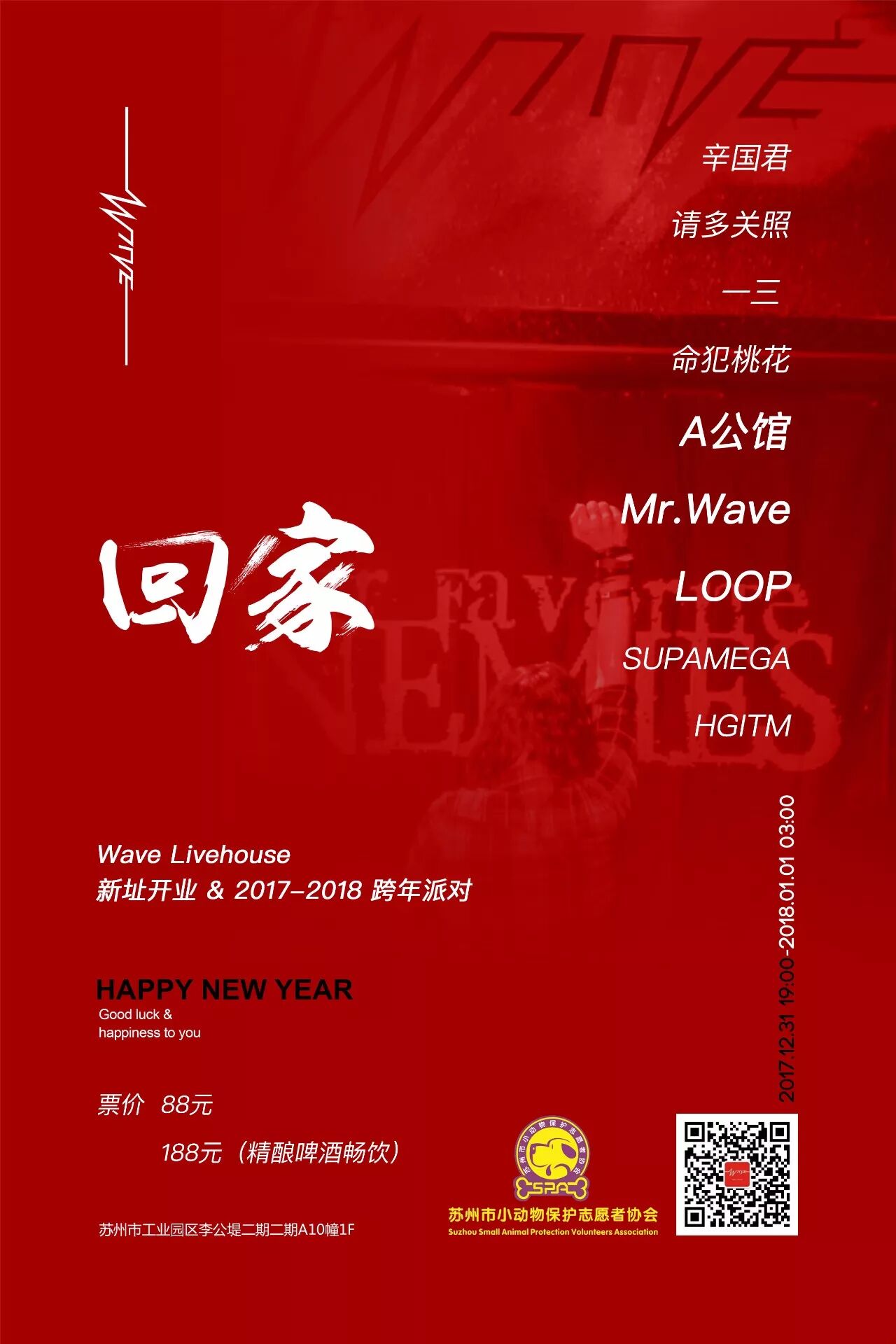 WAVE Livehouse新址开业&2017-2018跨年派对将于12月31日晚上7点开始至2018年凌晨3点,