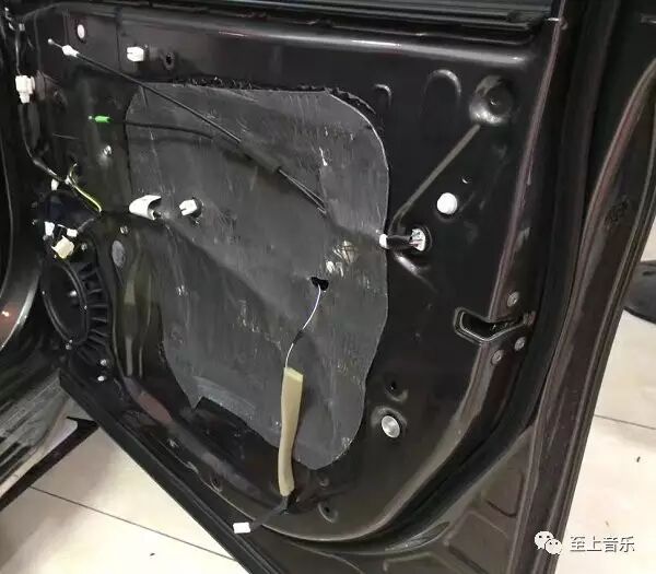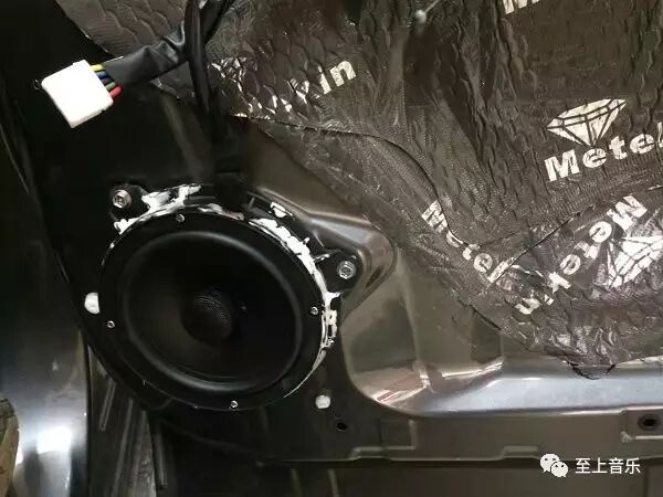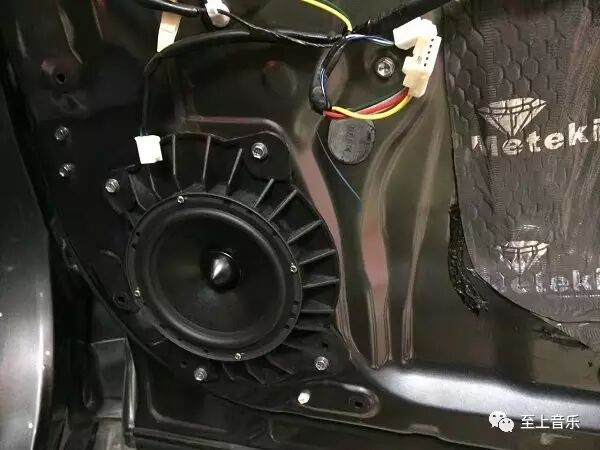 中低音安装在前门原喇叭位,技师给车门喇叭也加了专用的支架,顺便车门隔音也是在这里做的,整体手工细致,工作人员都非常有耐心。