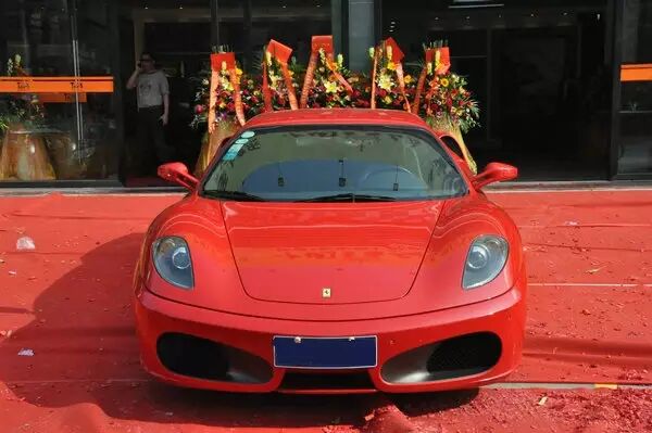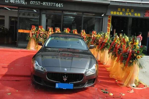 开业仪式,50米宽的大门口,我们只摆放了至上一号、法拉利、马沙拉蒂三部车。