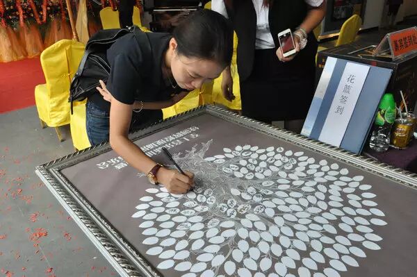 这棵树,在每一片树叶上,有一个参加的好朋友的名字,而因为你们的祝福,才让这棵树更好的成长,我们将它裱起来,挂在最醒目的位置,铭记这一刻,若干年后,来看一看,我们相识有多久了……