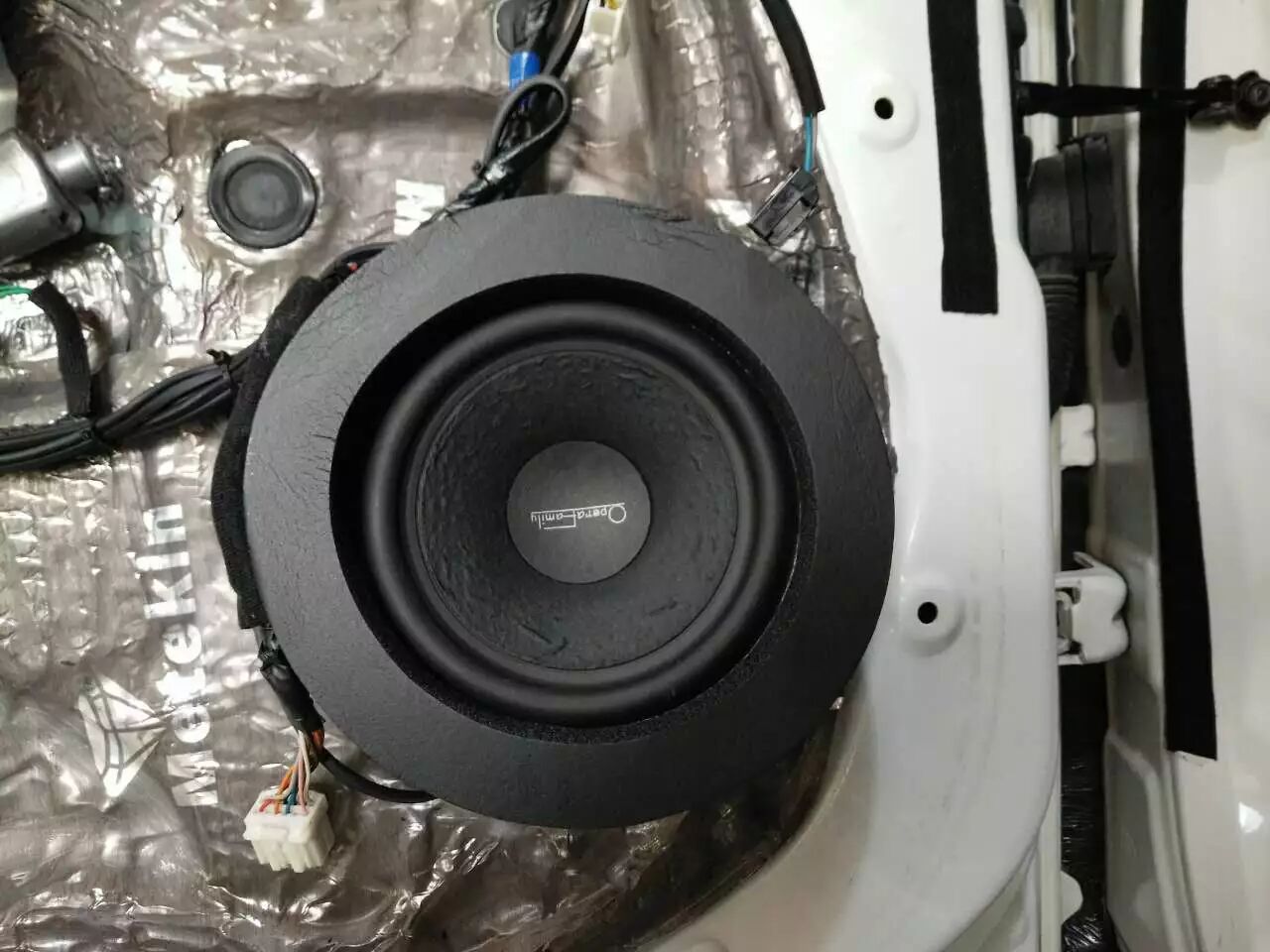 前门原位搭配专用垫圈和防水罩,配套纯音圈安装歌剧世家VS265中低音喇叭单元。