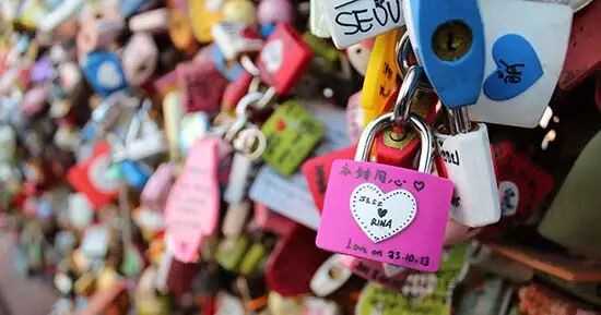 在公园里的铁丝网上挂着好几万个爱情锁,形成爱情锁墙成为韩国代表性的爱情景点。见证了无数种爱情在这里发生与延续,你也可以和她买一对好看的同心锁,挂在这里,作为爱情的见证与纪念。