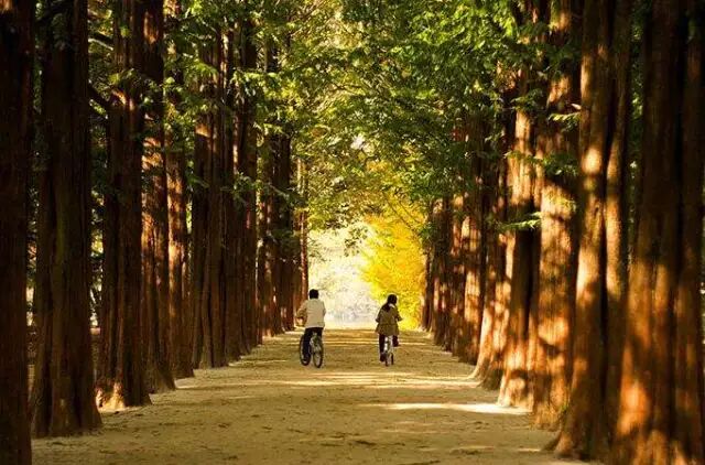 或是与最爱的她漫步于岛上的银杏树和水杉树的林荫道间,像韩剧中的男女主角一样,享受难得的浪漫气氛。