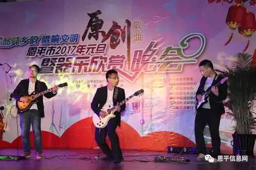 12月29日晚,由市文广新局主办,市文化馆承办,市音乐协会、飞翔艺术中心、春之声艺术中心、七彩虹艺术琴行、素乐文化艺术中心、豪歌演唱培训中心、优越艺术培训中心协办,“品味乡韵,唱响文明”恩平市2017年元旦原创歌曲暨器乐欣赏晚会在市文化艺术中心盛大举行。市委常委、宣传部部长吴永芳,市文广新局局长梁绮玲,市文广新局副局长莫丽婵、吴永恒,市文化馆馆长卢坚强等有关领导及广大群众观看了演出。