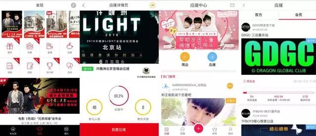 魔饭生、偶扑便专注于应援平台的建立。但是目前其平台上的活动更像是粉丝自发发起的众筹活动,平台官方或者会员粉丝提出应援项目,然后带动其他粉丝众筹达到数目完成项目,最后拿着这些资金去对自己的偶像完成应援,可能是去投票也可能是去购买应援产品等。魔饭生也会帮忙组织线下的应援活动,例如粉丝为Big Bang成员胜利的礼品应援便是其联系的胜利的父亲到他们的公司,将礼物转交给胜利本人,而公司可能会在其中收取5—10%的服务费。