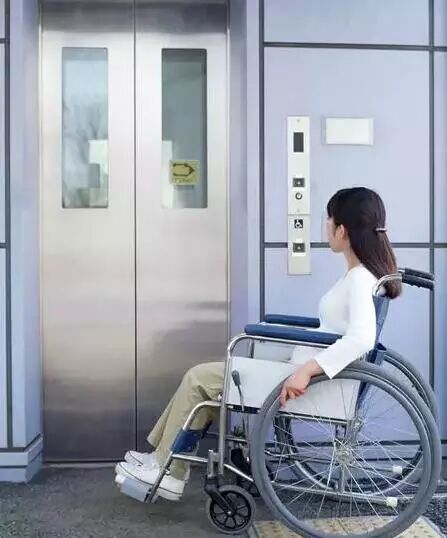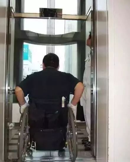 使用轮椅的人进去后要背对楼层显示屏