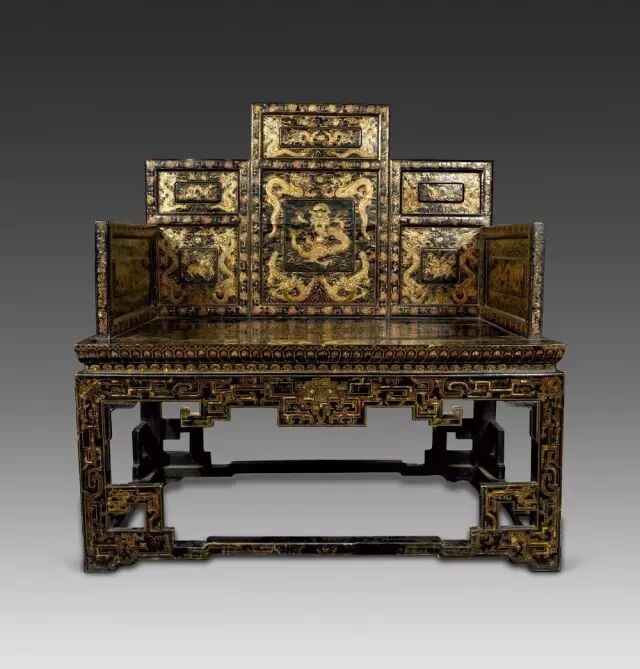 ▲ 清康熙 髹黑漆描金雕龙纹大宝座