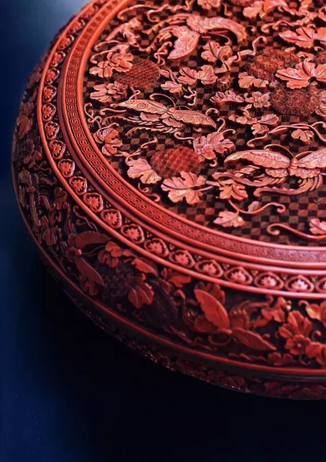 剔红则是在器物的胎型上,涂上几十层朱色大漆,待半干时描上画稿,然后再雕刻出纹样。此技法成熟于宋元时期,发展于明清两代。