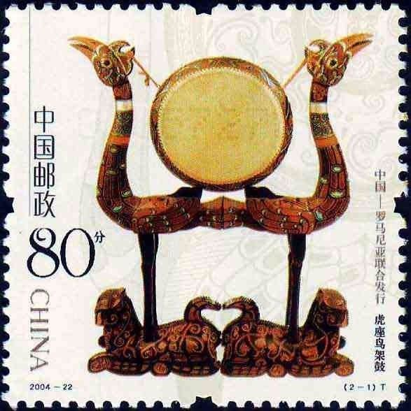 2004年,中国与罗马尼亚联合发行《漆器与陶器》特种邮票,中国方推出了一件代表文物。有些关注的朋友一定知道,它就是出土于荆州的楚国“虎座凤架鼓”。