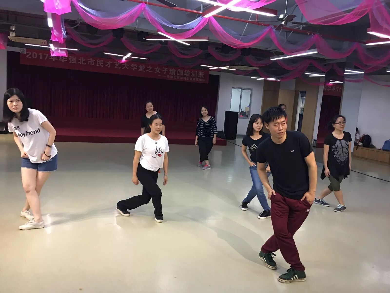 街舞团培训成人班招收学员近20人,暑期少儿班近40人,满负荷完成了规定课程,通过引用舞蹈中基本功训练,结合音乐,针对人的基本姿态进行身体活动练习,融健身、健心、健美为一体,加强审美教育。