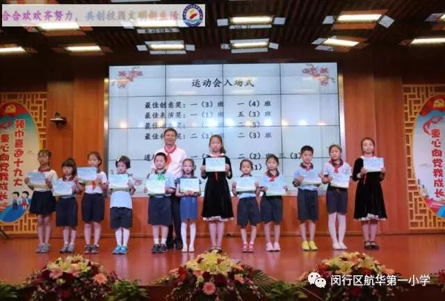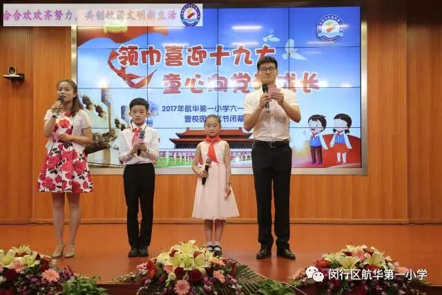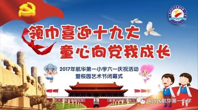 ,推进闵行区全国文明城区的创建,引导全体航一学生树立远大志向,培育美好心灵,增加对党的朴素情感与对组织的热爱,在六一之际学校开展了以“领巾喜迎十九大,童心向党我成长”为主题的2017年航华第一小学六一庆祝活动暨校园艺术节闭幕式。