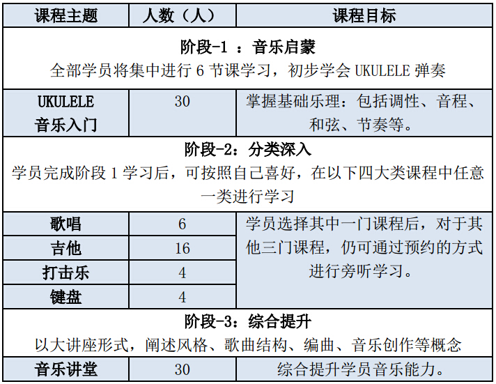 2)通过音乐欣赏会和讲座提高学员的鉴赏能力,开拓视野;