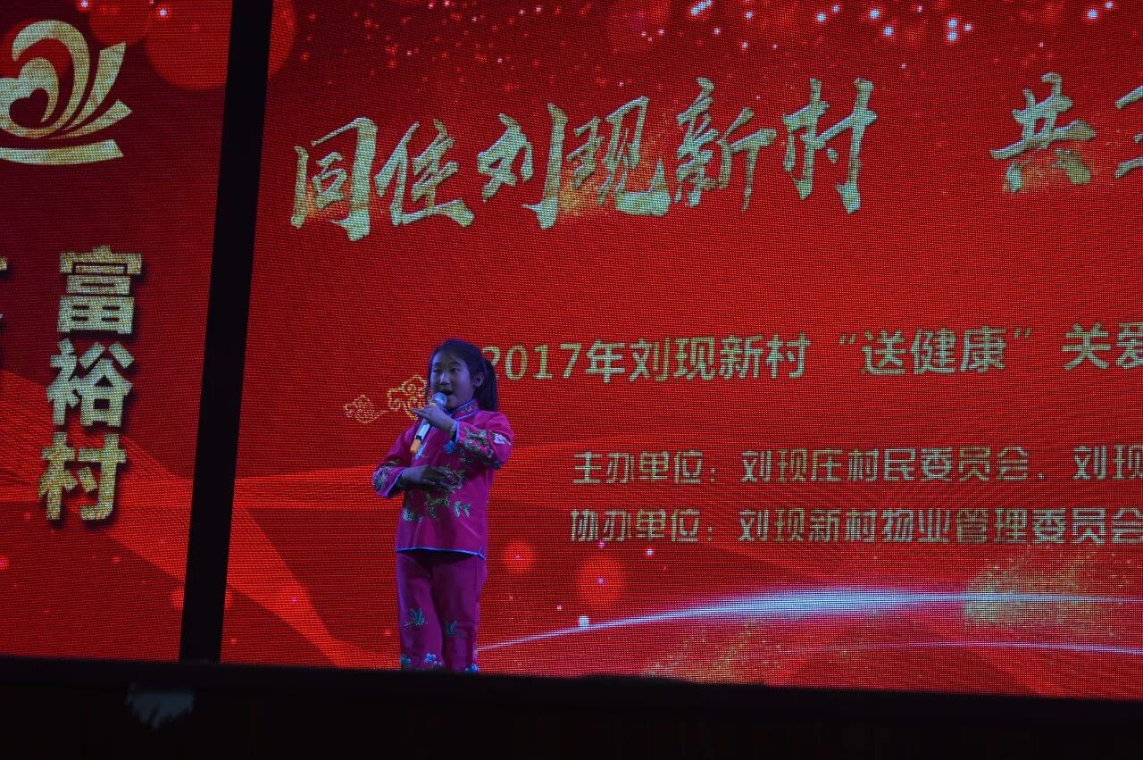 2017年11月26日明星小学音乐社团赴鸦鸿桥刘现庄村社区礼堂为村民演出。刘现庄村为全国文明村、孝老敬老村,周六“同住刘现庄村,共享健康生活”明星小学专场晚会。指导教师王猛和孩子们分别为村民演奏了歌曲《少年中国强》、评剧《火红的太阳》等节目,赢得了村民的热烈欢迎和高度赞扬,此次活动加强了校、村文明共建活动,也为孩子们搭建了成功成长的舞台。