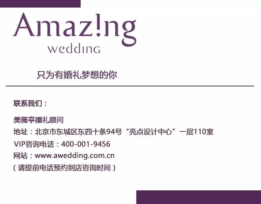 Amazing! 我们会每天为你献上超棒的婚礼案例和灵感~ 你可加美姐的微信私聊~ (微信号AmazingWedding1314)